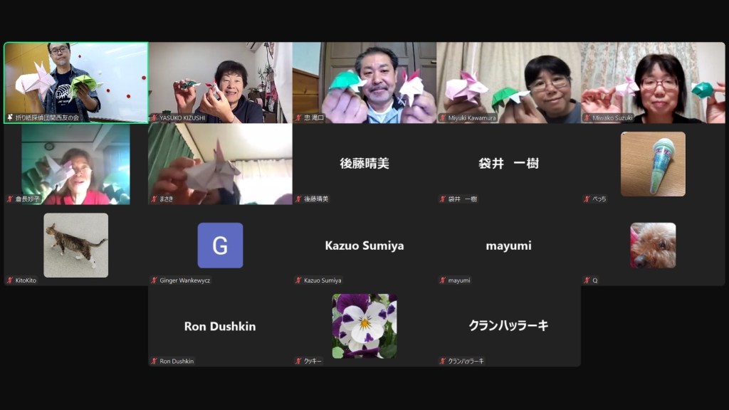 「手元カメラがあればいいのに」という声がありました。ご意見は大変ありがたいのですが、あまり機材に場所をとってしまうと現地参加者を減らさなければいけないなど、課題が非常に多いです。何ができるかは、「~友の会ではこのようにやっているから、ここでもできるだろう」のような、よく考えると何の論理的根拠もない無責任な発想ではなく、「関西では今あるリソースで何ができるのか」ということを第一に考えて検討したいと思っています。オンライン第一の発想をしてしまうと、現場にいらっしゃる方の臨場感が決定的に失われます。それを損ねてまでオンラインに注力するのはおそらく折り紙というものの伝承ベースの本質から考えても本末転倒だと思っています。